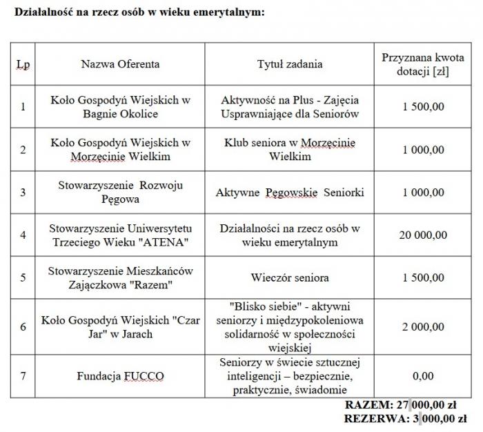 Znaczące wsparcie trafi także do organizacji działających na rzecz seniorów. Na działalność skierowaną do osób w wieku emerytalnym zabezpieczono 27 tys. zł, z czego 20 tys. zł otrzymało Stowarzyszenie Uniwersytetu Trzeciego Wieku „ATENA”.