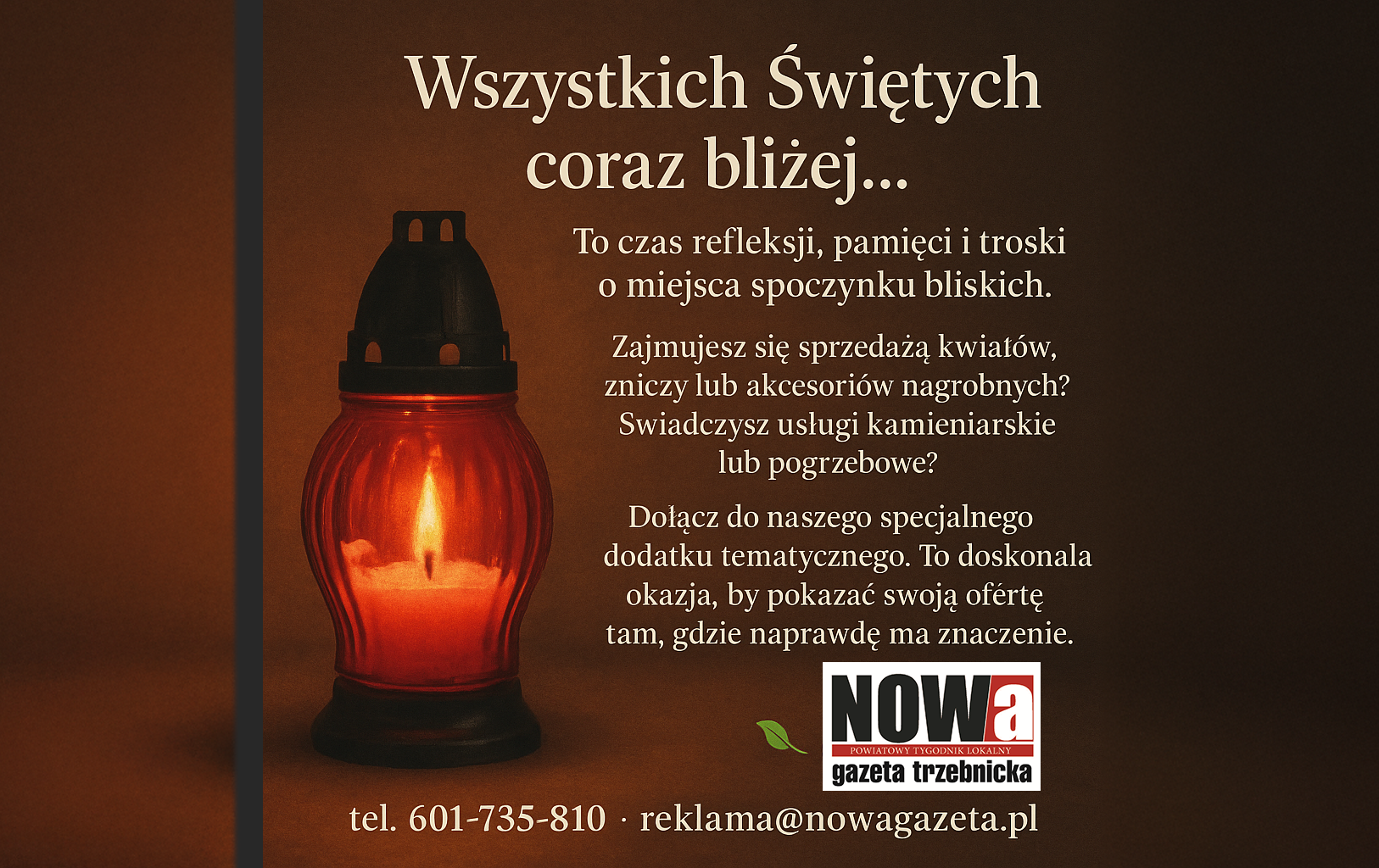 Z okazji zbliżającego się dnia Wszystkich Świętych przygotowujemy w naszej gazecie czterostronicowy dodatek tematyczny „CZAS ZADUMY”, poświęcony pamięci o bliskich, lokalnym tradycjom i przygotowaniom do tego wyjątkowego święta.