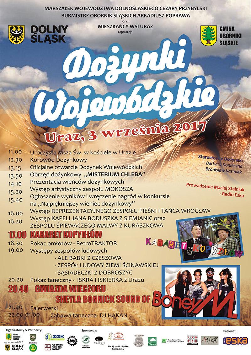 Dożynki rozpoczną się mszą św. o godz. 11 w kościele św. Michała Archanioła w Urazie. Następnie spod kościoła wyruszy barwny korowód z wieńcami dożynkowymi, któremu będzie towarzyszyła orkiestra dęta oraz przejazd zabytkowych traktorów.