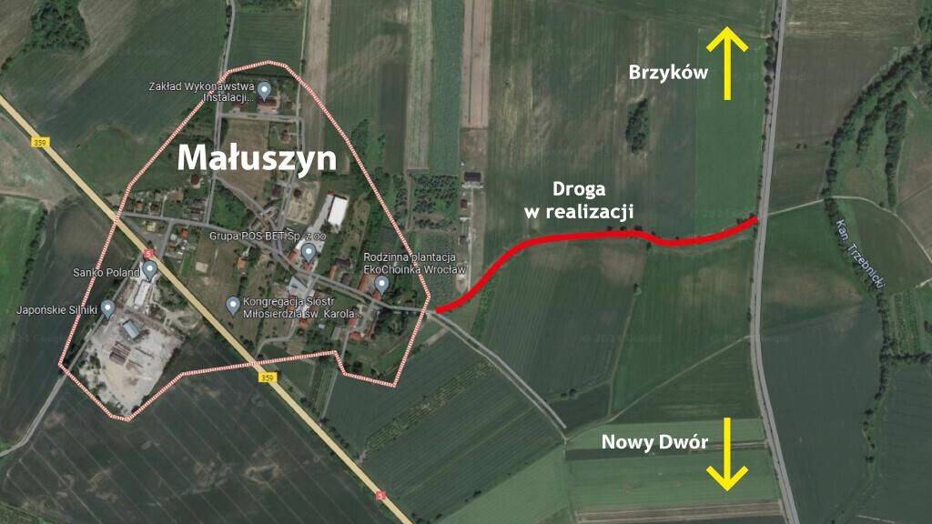 W obu miejscach napisano, że wybudowana, nowa droga połączyła Małuszyn z drogą Nowy Dwór - Brzyków. Dla osób, które nie mieszkają w tamtej okolicy, a które zobaczyły zamieszczone zdjęcia, wydawać się może, że nowa, asfaltowa droga została zbudowana z Małyszyna do drogi Nowy Dwór - Brzyków.