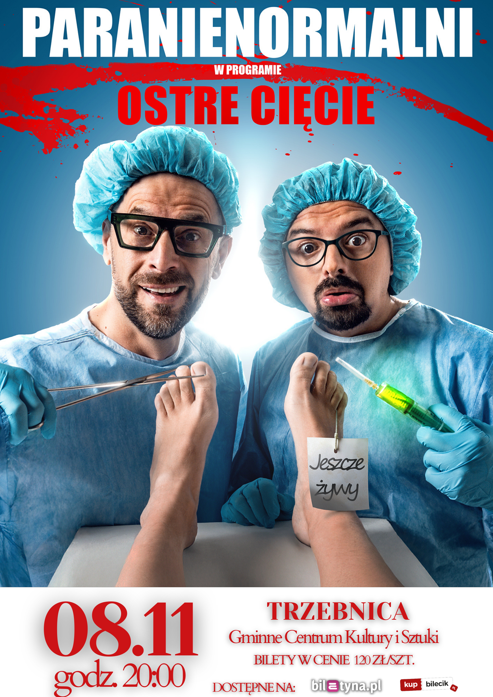 Kabaret Paranienormalni powraca z nowym programem „Ostre Cięcie”, który już wkrótce rozbawi mieszkańców Trzebnicy! To ponad dwugodzinny spektakl pełen humoru, absurdu i niespodzianek, idealny sposób na oderwanie się od codziennej rutyny.