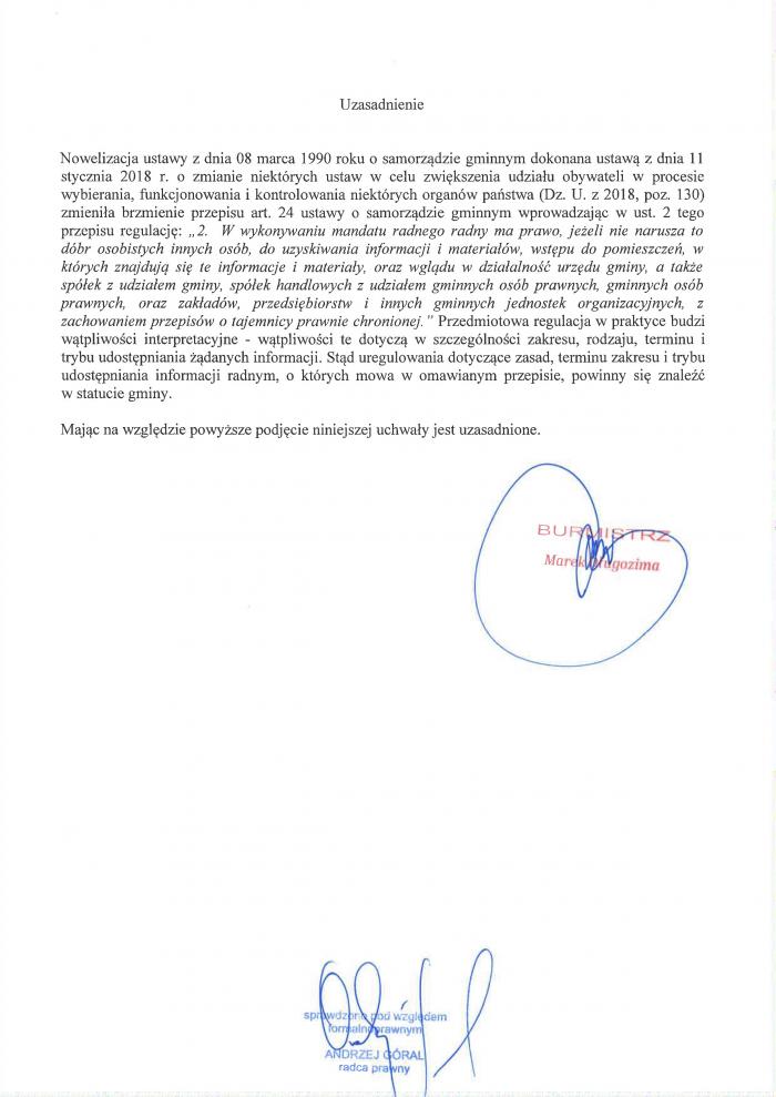 Poniżej możecie zobaczyć uchwałę, którą przegłosowali radni burmistrza i jej uzasadnienie.