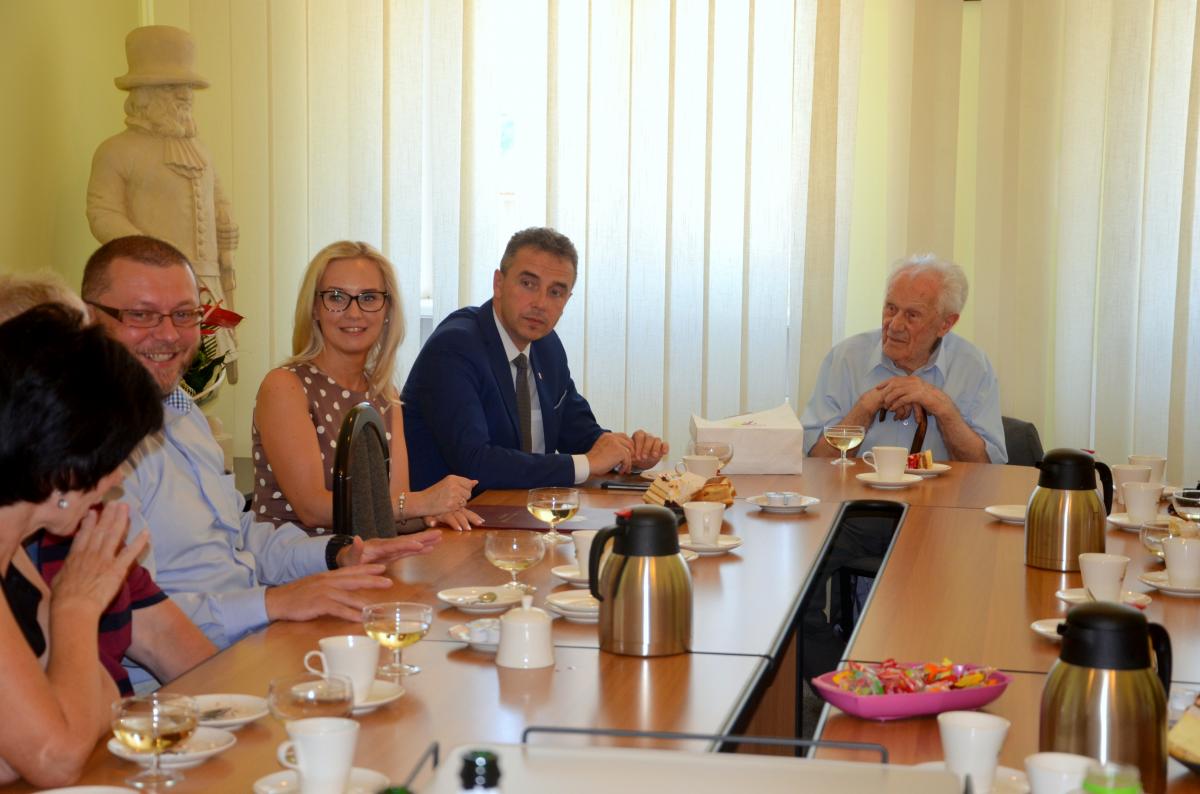 Od rana w sali narad Urzędu Miejskiego w Żmigrodzie unosiła się niezwykła atmosfera, a to wszystko za sprawą Pana Jana Ratajewskiego, jubilata, który w roku 2017 obchodził swoje 100 urodziny. Pan Jan to bardzo miły i wyjątkowy mężczyzna. Z dumą odebrał przesłane życzenia od Premier Rady Ministrów oraz Wojewody Dolnośląskiego. Również burmistrz Robert Lewandowski wręczył Jubilatowi list gratulacyjny, kwiaty oraz upominek. W cudownej, rodzinnej atmosferze wykonaliśmy pamiątkowe fotografie. Szczęście na twarzy Pana Jana oraz radość rodziny… bezcenne.