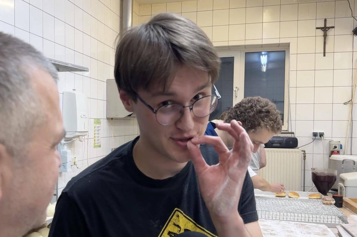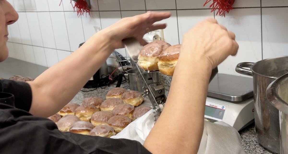 Już od progu przywitał nas zapach świeżo smażonych pączków i poczęstunek jeszcze ciepłymi wypiekami. Chwilę później włączyliśmy kamerę i mikrofon. W asyście właściciela weszliśmy do pracowni, gdzie tempo nie zwalniało ani na moment.