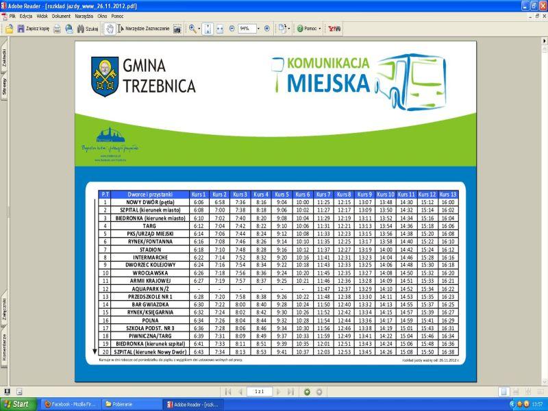 W przetargu ogłoszono oferty na wykonawców obsługujących dwie trasy: pierwszą jest kurs po mieście tzw. trzebusikiem, nowy przewoźnik obsługiwać będzie tę trasę od 3 grudnia, a umowa z gminą zostanie podpisana na 3 lata. Kwota zaproponowana przez Kubiak Transport wynosi ponad 155 tys.zł. Trasa miejska została przedłużona - trzebusik dojeżdżać będzie m. in. do Aquaparku i do Szkoły Podstawowej nr 3.