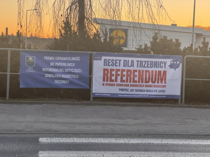 Banery informujące o tym, że Prawo i Sprawiedliwość nie popiera referendum w sprawie odwołania burmistrza Marka Długozimy, które jeszcze niedawno pojawiły się w kilku miejscach Trzebnicy, w dużej części zniknęły z przestrzeni miasta. W wielu lokalizacjach zostały już usunięte – ostały się jedynie w pojedynczych punktach.