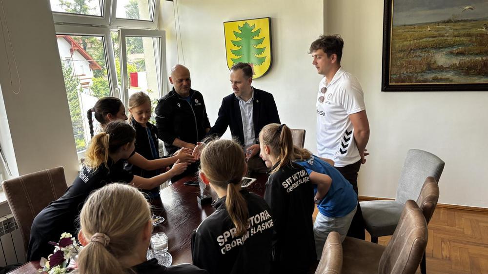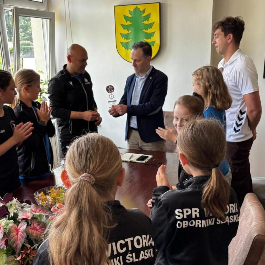 Juniorki SPR Victoria Oborniki Śląskie - wicemistrzynie Dolnego Śląska! 16 młodych szczypiornistek ze szkół podstawowych nr 2 i 3 w Obornikach Śląskich przez cały rok walczyło na boisku, zdobywając imponującą liczbę 411 bramek. Zaangażowanie i determinacja zawodniczek zostały docenione nie tylko przez Związek Piłki Ręcznej w Polsce, ale także przez lokalny samorząd. Z dumą prezentują swój puchar u zastępcy burmistrza.
