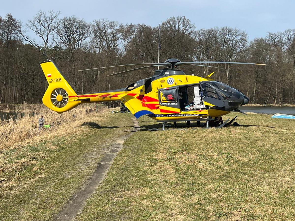 Podczas zawodów wędkarskich w Wilczynie, dziś około 11, ponad 70 letni mieszkaniec Wrocławia nagle stracił przytomność. Strażacy rozpoczęli resuscytację, na miejscu działały też ZRM i śmigłowiec LPR. Akcja trwała około godziny, jednak lekarz stwierdził zgon mężczyzny. Fot. kpt. Łukasz Dziedziński, KP PSP Trzebnica.