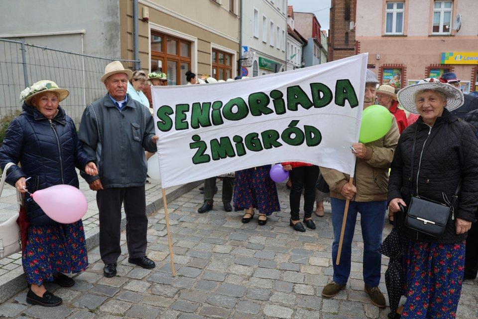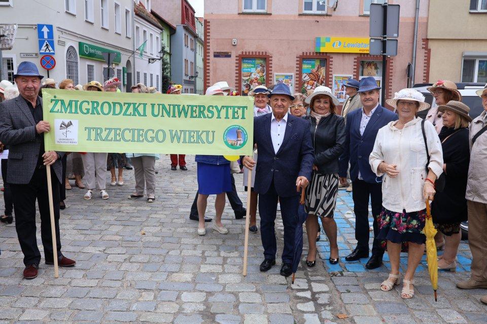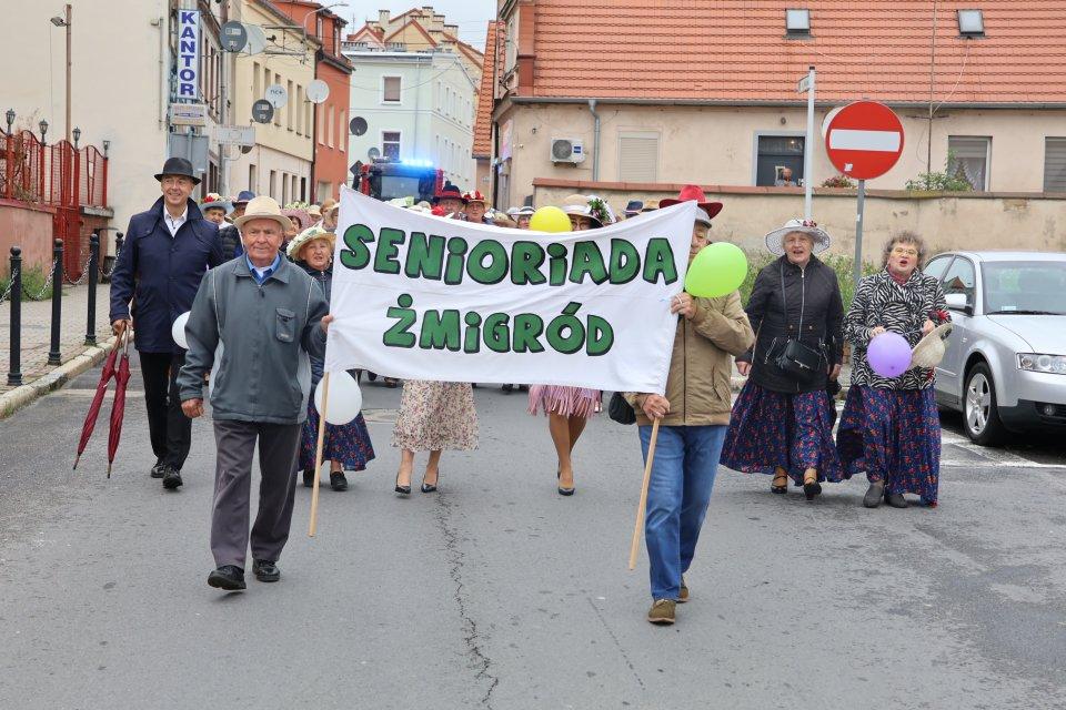 Galeria zdjęć z Senioriady 2019 w Żmigrodzie, zorganizowanej przez Klub Seniora Humorek, pełna barwnych rekwizytów i uśmiechów. Kapelusze to obowiązkowy element stroju, a na scenie wystąpili artyści, w tym zespoły muzyczne i wokaliści. Wydarzenie pełne integracji i radości, które wspierane było przez gminę Żmigród.