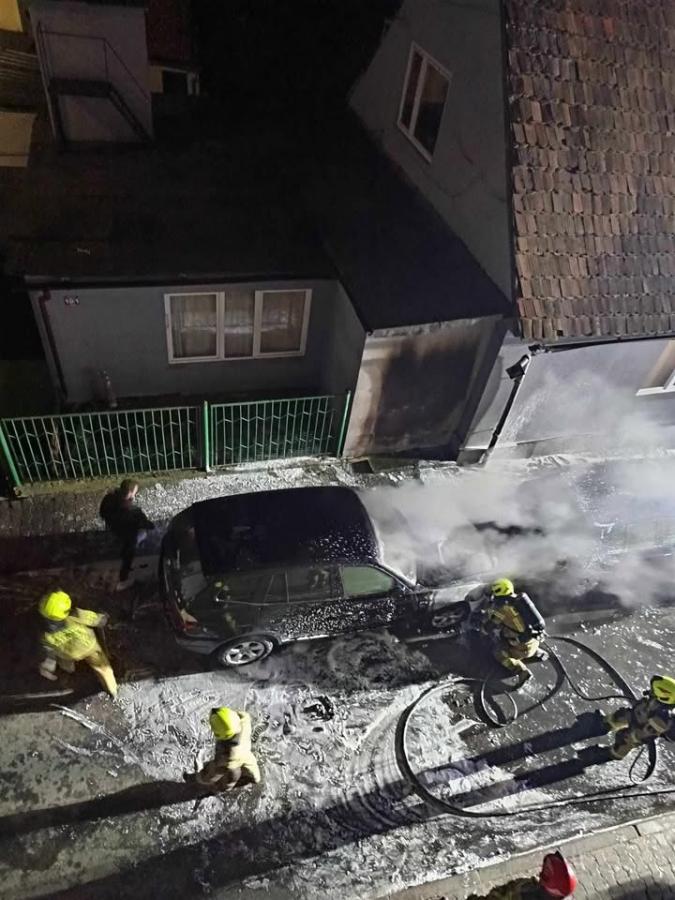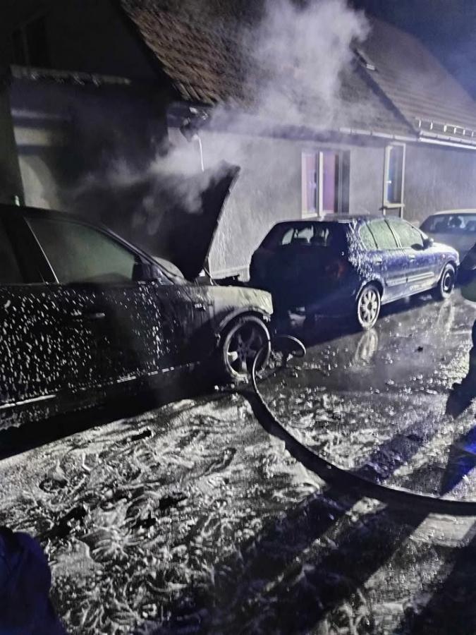 W nocy z soboty na niedzielę, 8 marca, straż pożarna interweniowała przy pożarze dwóch aut zaparkowanych obok siebie na drodze gminnej. Płonęły BMW i Nissan, stojące około 1,5 metra od siebie, blisko budynków. Ogień szybko opanowano jednym prądem wody, chłodząc też elewację. Najmocniej spłonął przód BMW, a w Nissanie nadpalony został tył. Uszkodzone są też rynny i rura spustowa.