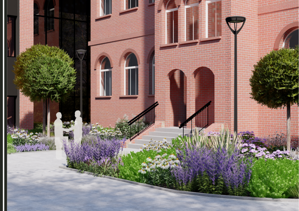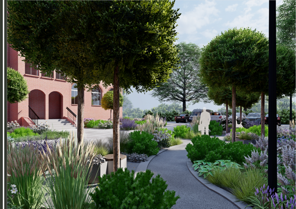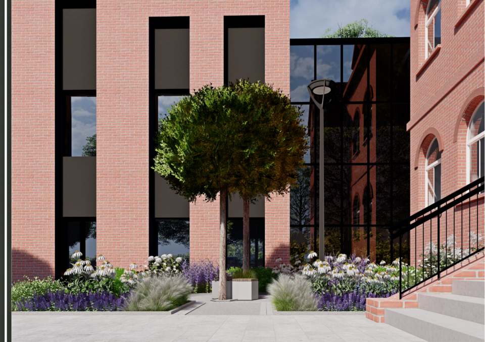 Projekt autorstwa mgr architekt krajobrazu Anny Kuchty zakłada zwiększenie bioróżnorodności poprzez dobór roślin wspierających lokalny ekosystem - byliny i krzewy miododajne, odporne na zmienne warunki atmosferyczne. Przed urzędem powstanie układ zielonych wysp połączonych ścieżkami, umożliwiający retencję wody deszczowej. Dodatkowo planowana jest strefa relaksu z elementami małej architektury i oświetleniem, zapewniająca bezpieczeństwo i dostępność terenu po zmroku.